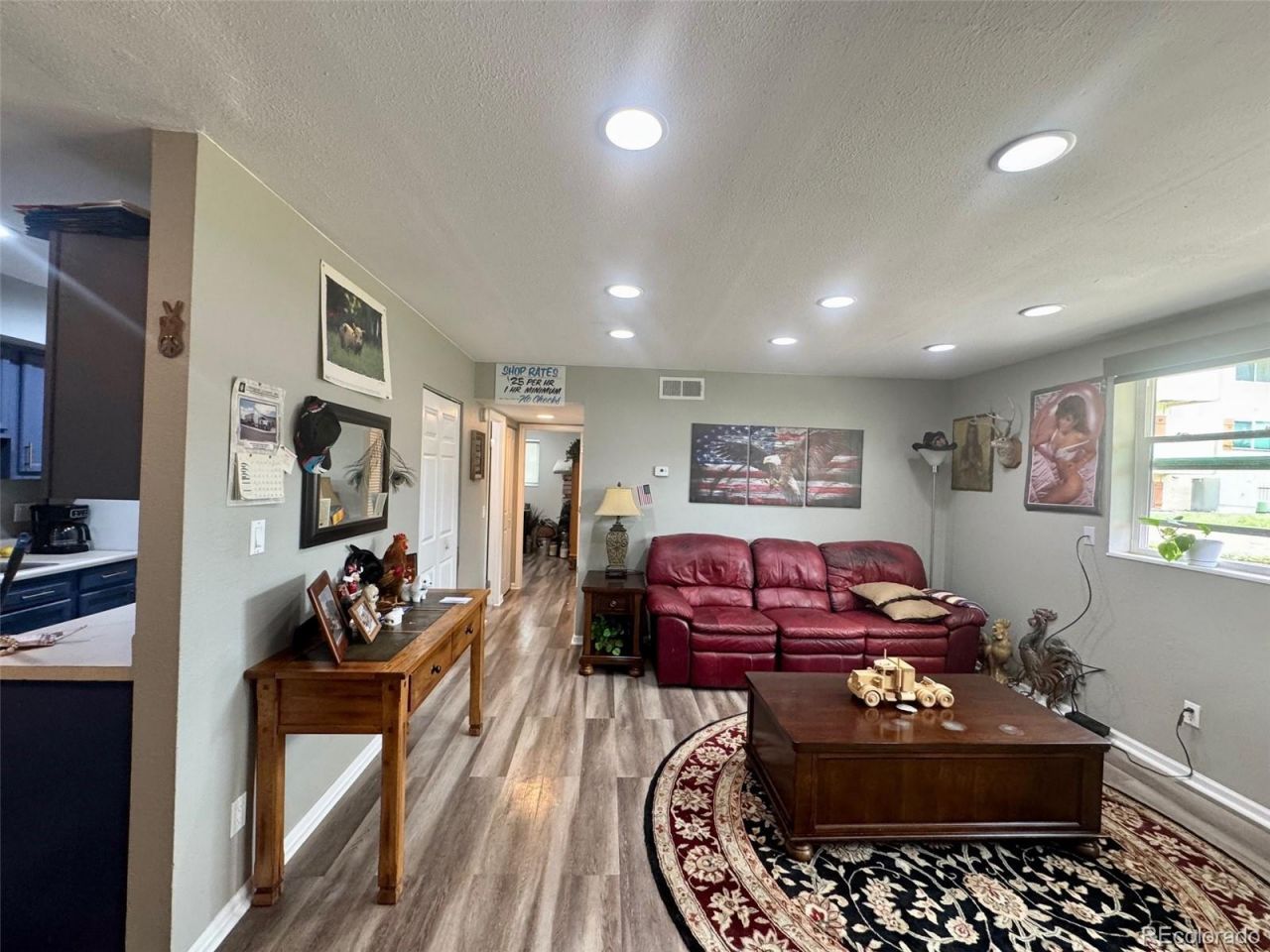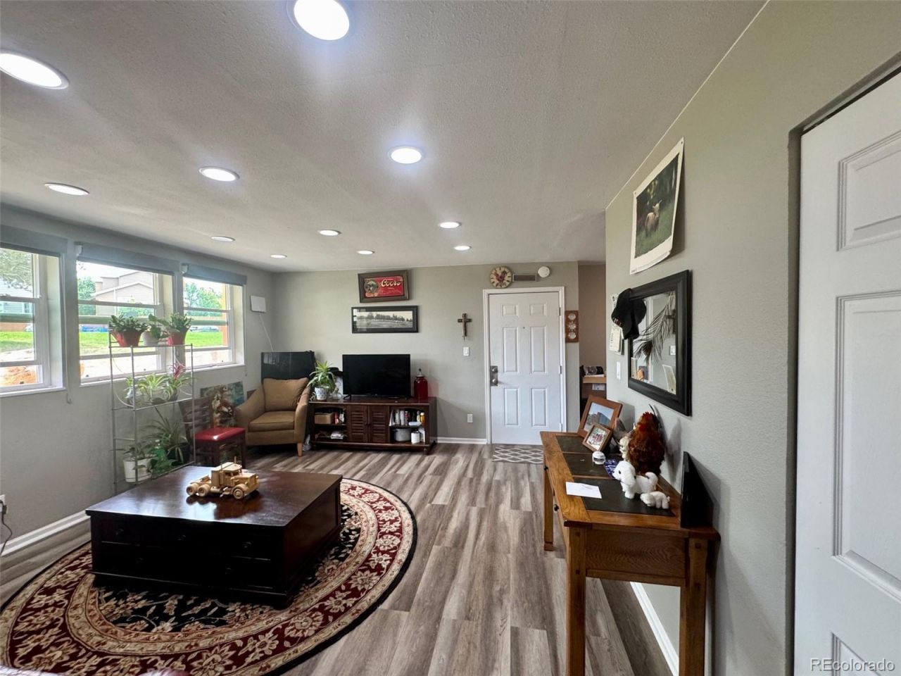 Well maintained, garden level corner unit offers a large living room with wonderful naturallighting, dining area, galley style kitchen with a full appliance package- stove range, dishwasher, microwave andrefrigerator. Modernized full bathroom with beautiful tile work. A larger sized second bedroom with deep closet space anda spacious primary bedroom. The property has been updated with vinyl flooring through-out, appliances, newer windowsand A/C. Convenient reserved parking space and shared laundry. Well maintained common grounds and swimming pool for yourenjoyment! Property is within walking distance to shopping, restaurants and public transportation. Easy access to I-25.Take advantage of this opportunity!