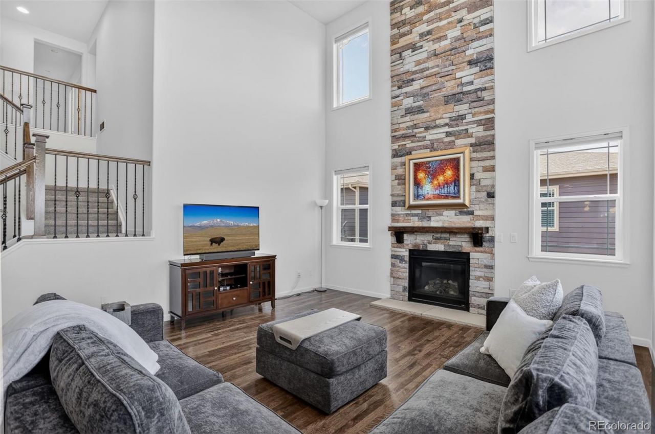 Welcome to a home that instantly feels like the one the moment you get through the door.Just off the entry, a private study offers the perfect space for focused work or seamless Zoom calls. Rich hardwood flooring carries you through the main level, guiding you past an elegant dining room designed for memorable gatherings and effortless entertaining.Then, the heart of the home truly shines. The expansive gourmet kitchen is sure to impress, featuring a large island, granite countertops, stainless steel appliances, double ovens, and a cooktop that will inspire your inner chef. It opens beautifully to a stunning family room where soaring two-story ceilings and a dramatic floor-to-ceiling stone fireplace create a space that feels both grand and inviting.Upstairs, youll find three bedrooms plus a versatile den. The generously sized primary suite is a true retreat, complete with a spa-like en suite bath and a thoughtful touch youll love: direct access to the second-floor laundry room, exactly where you need it. Two additional bedrooms and a full bath complete the upper level.The finished walkout basement expands your living space even further, offering an additional bedroom and full bath, abundant natural light, and endless possibilities for a rec room, fitness area, or both.Enjoy the benefits of fully owned solar panels. Plus, take in breathtaking views of the iconic Rock along with sweeping mountain vistas from your upper deck. Its a setting that elevates everyday living and creates a true sense of place.Located just minutes from downtown, youll enjoy easy access to local favorites like Castle Cafe and Crave Real Burgers, along with a variety of dining, shopping, and entertainment options throughout the area . Convenient proximity to Interstate 25 makes commuting to both Denver and Colorado Springs a breeze, while still enjoying the charm and character that make Castle Rock such a sought-after place to call home.