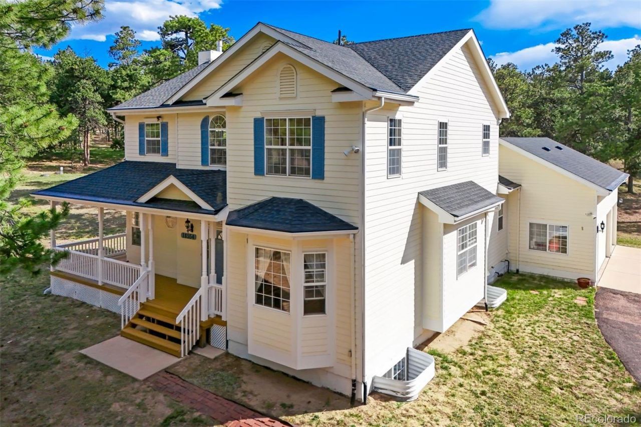 Timeless Victorian charm meets Colorado living in this beautifully situated Kings Deer residence. Nestled on a 2.5 acre treed lot, this traditional Victorian style home, complete with wrap around front porch, offers privacy, character, and room to breathe?all within one of the most desirable neighborhoods in northern El Paso County. Step inside to an inviting main level wrapped in rich hardwood floors, classic architectural details, and abundant natural light. The spacious kitchen and family room area (complete with gas fireplace), formal dining room, and dedicated home office create a functional layout ideal for everyday living. Upstairs, youll find four generously sized bedrooms, including a serene primary suite (2 walk in closets!) with views of the surrounding pines. The unfinished basement provides endless potential?additional bedrooms, a rec room, home gym, or storage?ready for your vision. Practical upgrades bring peace of mind: Two 50 gallon hot water heaters, new furnace, newer roof, new leach field and third septic tank, proper fire mitigation completed, Gutter Helmet system installed. A spacious 3 car garage offers plenty of room for vehicles, tools, and Colorado toys. Living in Kings Deer means enjoying a true Colorado lifestyle. The community features a golf course, sports field, playgrounds, and over 7 miles of maintained trails for walking, running, or wildlife watching. You may appreciate the highly regarded Lewis Palmer School District and will love being less than 10 minutes to I 25 or Highway 83?a rare blend of rural tranquility with quick access to Monument, Colorado Springs, and Castle Rock. A truly ideal rural setting with convenient access to city amenities?this Kings Deer Victorian offers the space, character, and lifestyle buyers dream of.