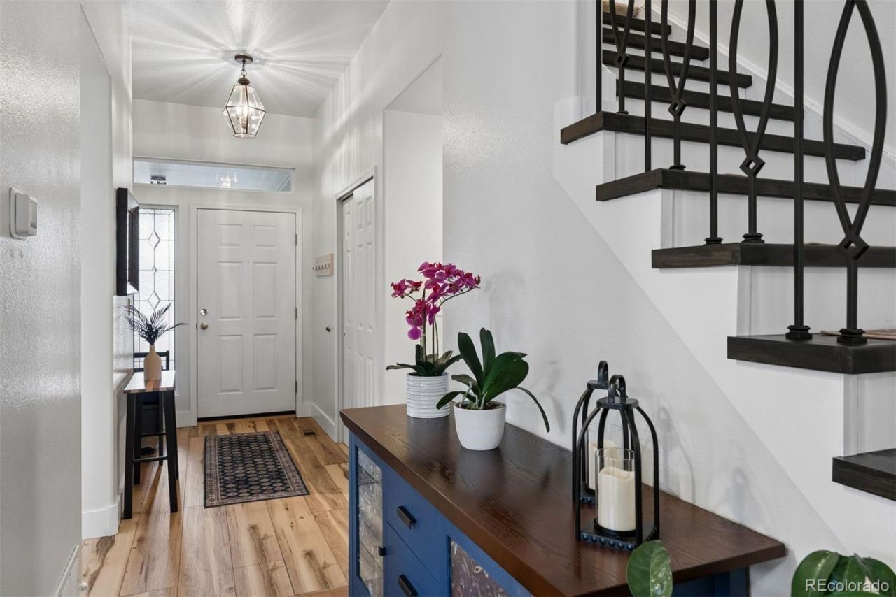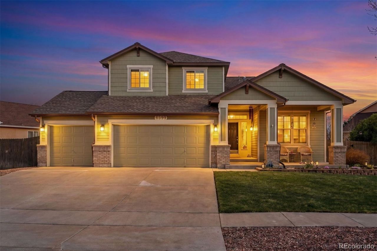 Stunning curb appeal on the best lot in the entire neighborhood! Timeless elegance describes this impeccably maintained residence, where thoughtful design and elevated finishes come together in effortless harmony. Perfectly balanced for refined entertaining and comfortable living, the home offers 10-foot ceilings, newer furnace and central air, a spacious 3-car garage, impact resistant roof, and a completely updated kitchen and primary bedroom suite that is as functional as it is beautiful. The kitchen serves as the heart of the home, appointed with high-end kitchen appliances featuring a Wolf gas cooktop, Wolf double wall ovens, range hood, and Sub-Zero refrigerator! The kitchen also includes custom-made Wilsonart engineered countertops, a designer tile backsplash, recessed and pendant lighting, an expansive center island with an additional sink, and floor-to-ceiling custom cabinets and drawers. The eat-in kitchen also boasts a custom coffee bar! The kitchen opens seamlessly into the dining area and inviting living room, where a corner gas fireplace creates a warm, understated focal point. The main-level primary suite offers a serene retreat, with an oversized bay window overlooking the private 1/4 acre backyard. The en-suite bath provides a spa-inspired experience, including 2 separate closets. Upstairs, a versatile loft adds flexible living space, along with two generous bedrooms adjacent to a full bath. The unfinished lower level presents exceptional potential for a home theater, a bathroom (rough-in plumbing in place), gym, fourth bedroom, or custom entertaining space. The fully fenced backyard offers privacy and room to relax, with front and rear sprinkler systems for easy maintenance, outdoor speakers, an expansive paver patio with an outdoor kitchen, childrens playset, and like-new storage shed. Set on a quiet street in Springs Ranch, the home is ideally located near the Powers Corridor, with convenient access to shopping, dining, and everyday amenities.
