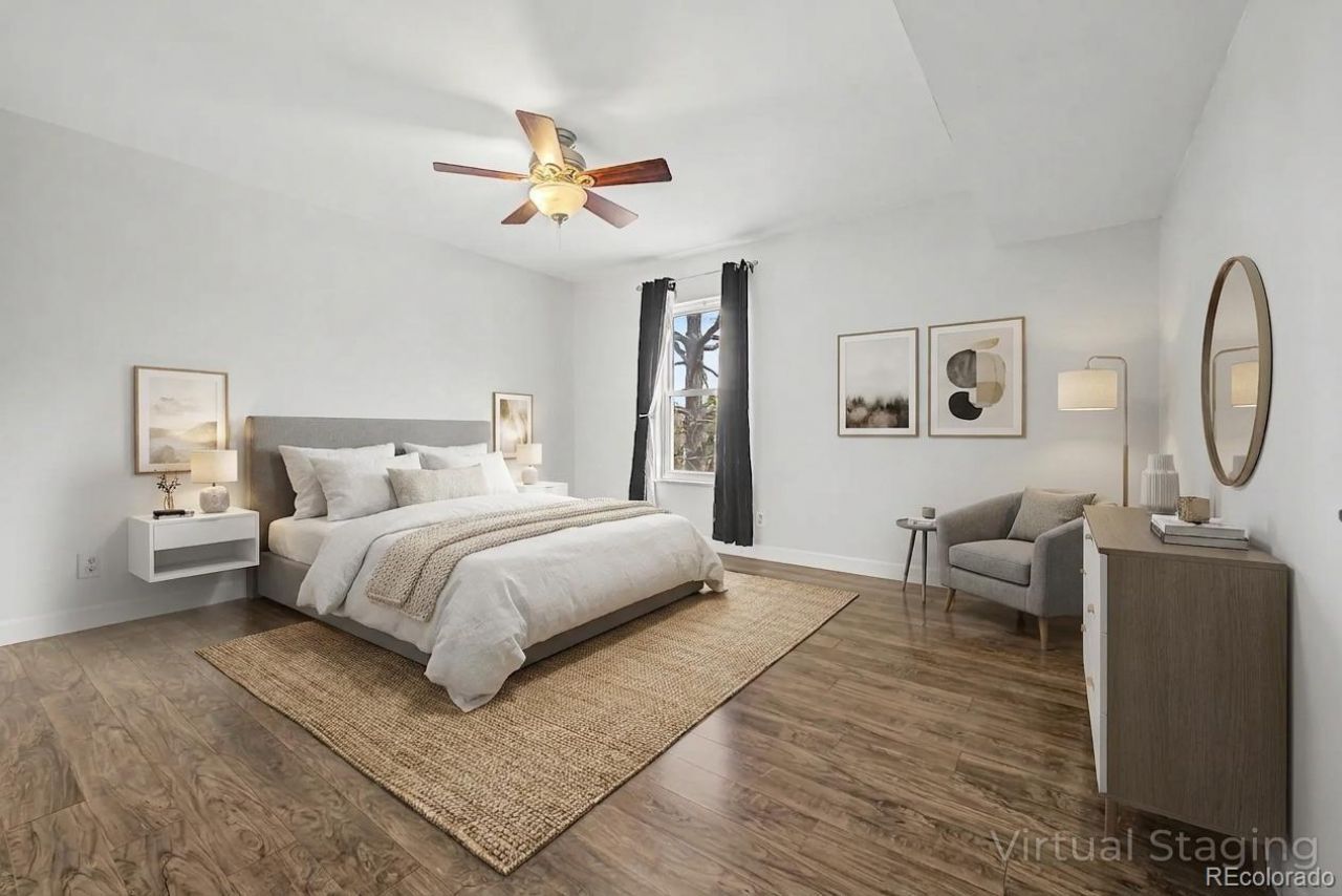 Welcome to this bright and inviting 1-bedroom, 1-bath condo in the desirable Shadow Wood community, offering 714 square feet of comfortable, low-maintenance living paired with resort-style amenities. Step inside to a spacious, light-filled living area where updated flooring and a cozy wood-burning fireplace create a warm, welcoming atmosphere. The open layout provides flexibility for both relaxing and entertaining, while sliding doors lead to a private covered balcony - perfect for enjoying fresh air year-round. The kitchen features ample cabinetry, essential appliances, and a functional breakfast bar that flows seamlessly into the main living space for easy everyday living and hosting. The generously sized bedroom provides a quiet retreat with great natural light, while the full bathroom is conveniently located and well-appointed. Additional highlights include in-unit laundry, extra storage, and a reserved parking space. Residents enjoy access to an impressive array of community amenities, including an indoor pool, fitness center, sauna, clubhouse, tennis courts, and scenic walking trails - offering a lifestyle centered around comfort and convenience. Ideally located with easy access to shopping, dining, parks, and major commuter routes, this home makes it simple to enjoy everything Denver has to offer. A well-rounded opportunity for low-maintenance living with space, amenities, and everyday convenience.