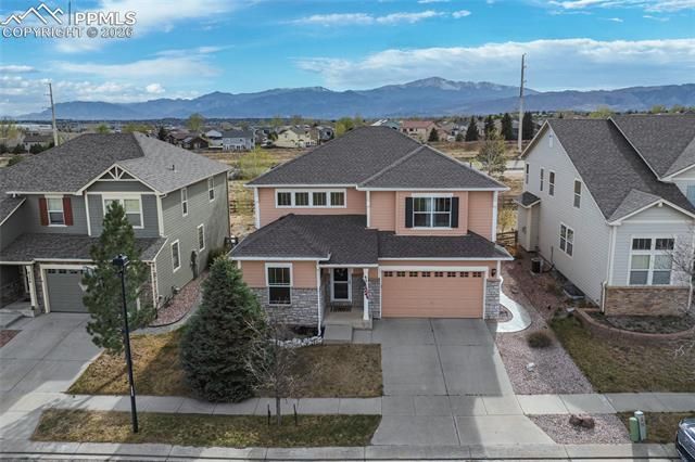 Colorado Living with Pikes Peak Views in Wolf Ranch. Welcome home to this spacious and beautifully maintained 2-story in the highly sought-after Wolf Ranch community and award-winning D20 school district. With 5 bedrooms, 4 bathrooms, and a 3-car garage, this home offers the space, layout, and location buyers are looking for. Step inside to an open and inviting floor plan featuring warm wood floors, a generous living area, and an eat-in kitchen complete with an island, stainless steel appliances, gas range, 42” maple cabinets, and walkout access to the back deck—perfect for enjoying those incredible Pikes Peak views. Upstairs, the spacious primary suite offers a relaxing retreat with a 5-piece bath, tile finishes, and a large walk-in closet. Additional bedrooms provide flexibility for family, guests, or a home office setup. The finished basement expands your living space even further with the 5th bedroom and attached full bathroom. The fenced backyard is ready for entertaining with a patio and fire pit—ideal for Colorado evenings with mountain views as your backdrop. Major system updates bring peace of mind, including a brand-new furnace and A/C (2025). Located just minutes from parks, schools, trails, and all that Wolf Ranch has to offer, this home combines comfort, value, and views in one incredible package. Don’t miss your chance to own a piece of Colorado living with an unbeatable location.